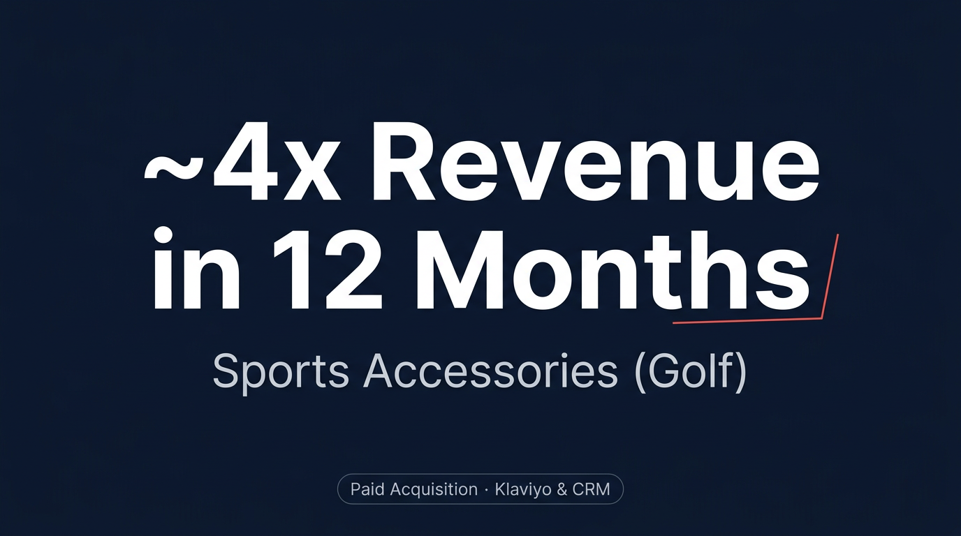 A golf accessories brand with decent products and no growth engine. We built paid acquisition and CRM in parallel, and revenue grew roughly 4x in a year.